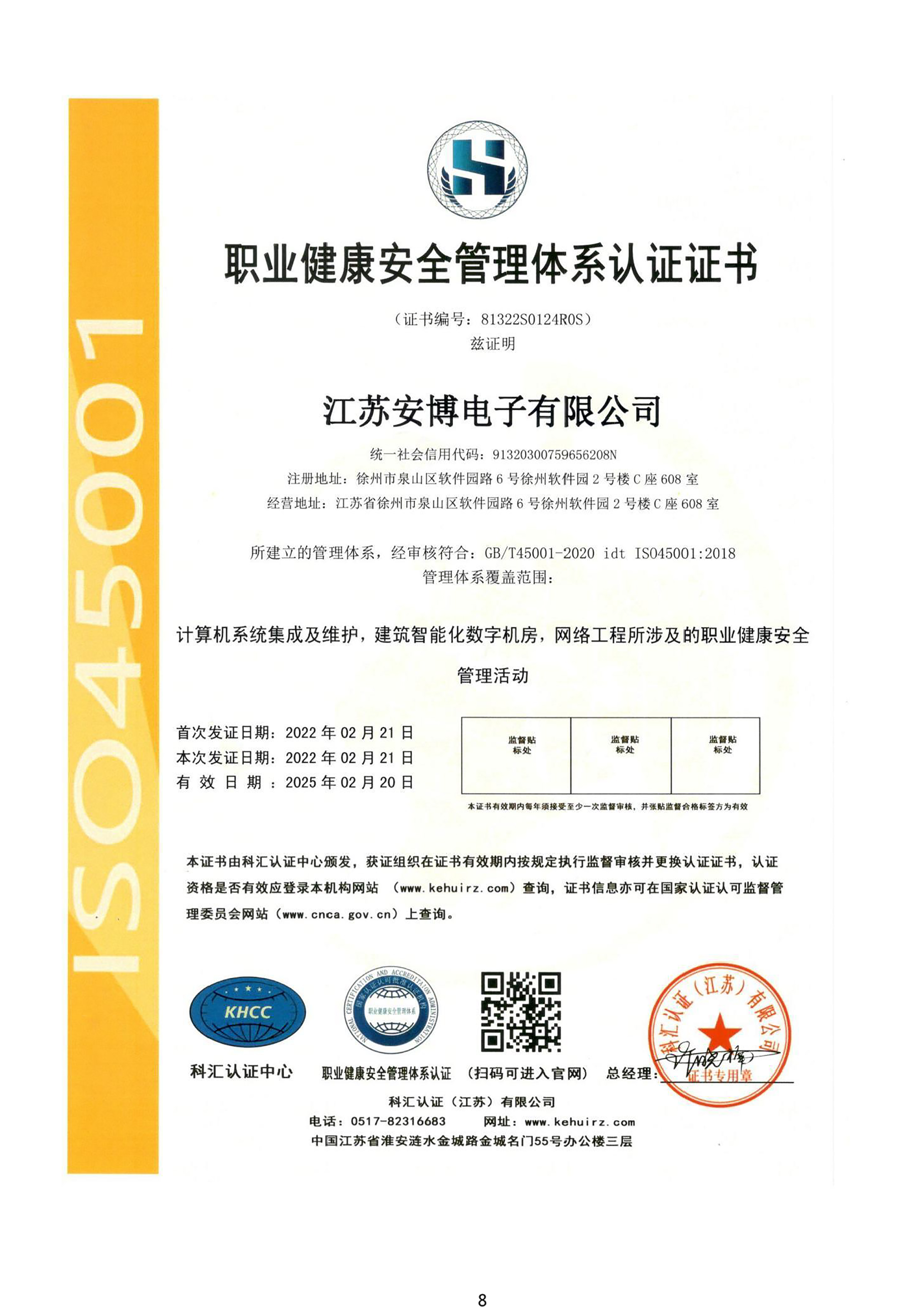 職業(yè)健康安全管理體系認(rèn)證證書(shū)
