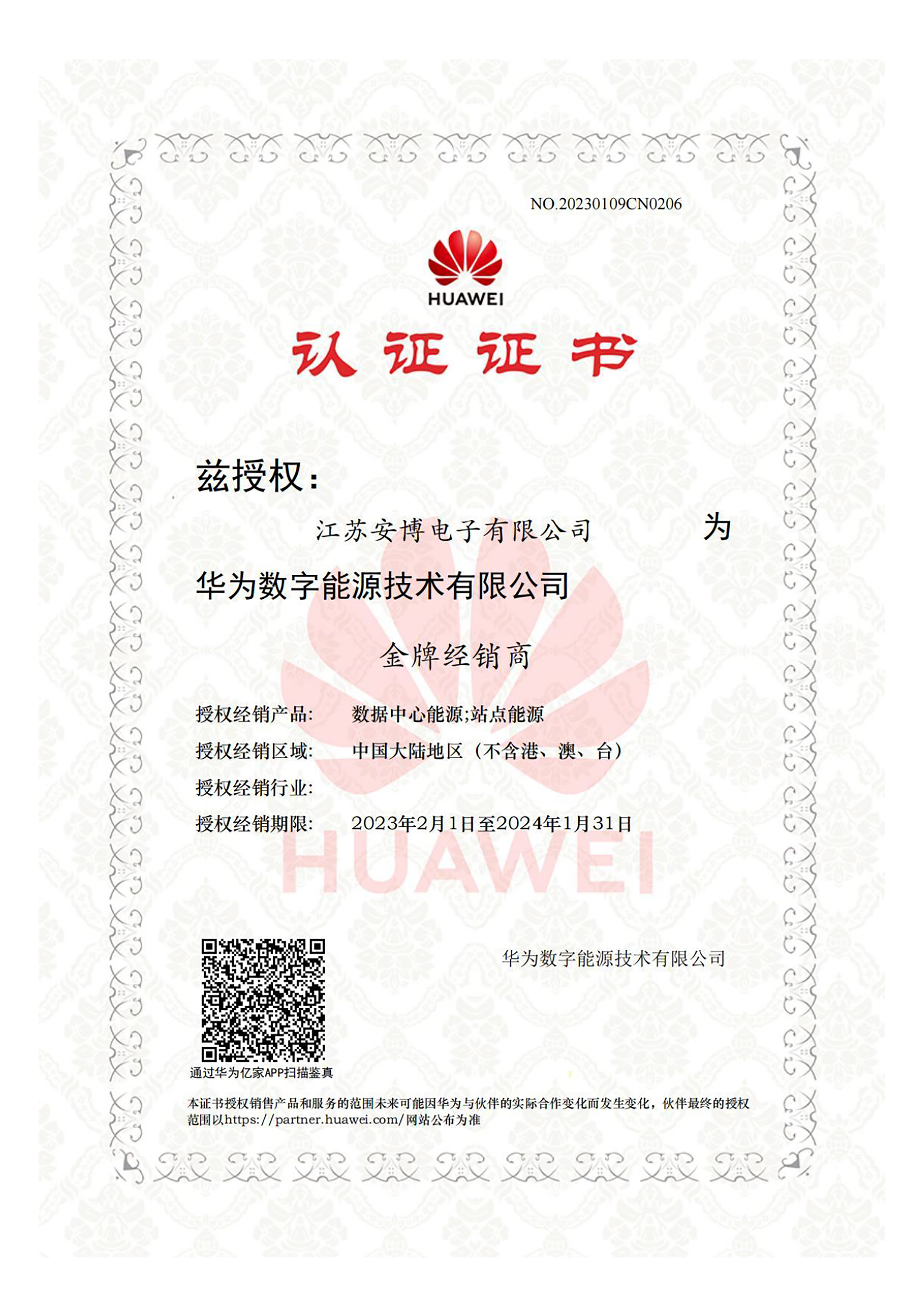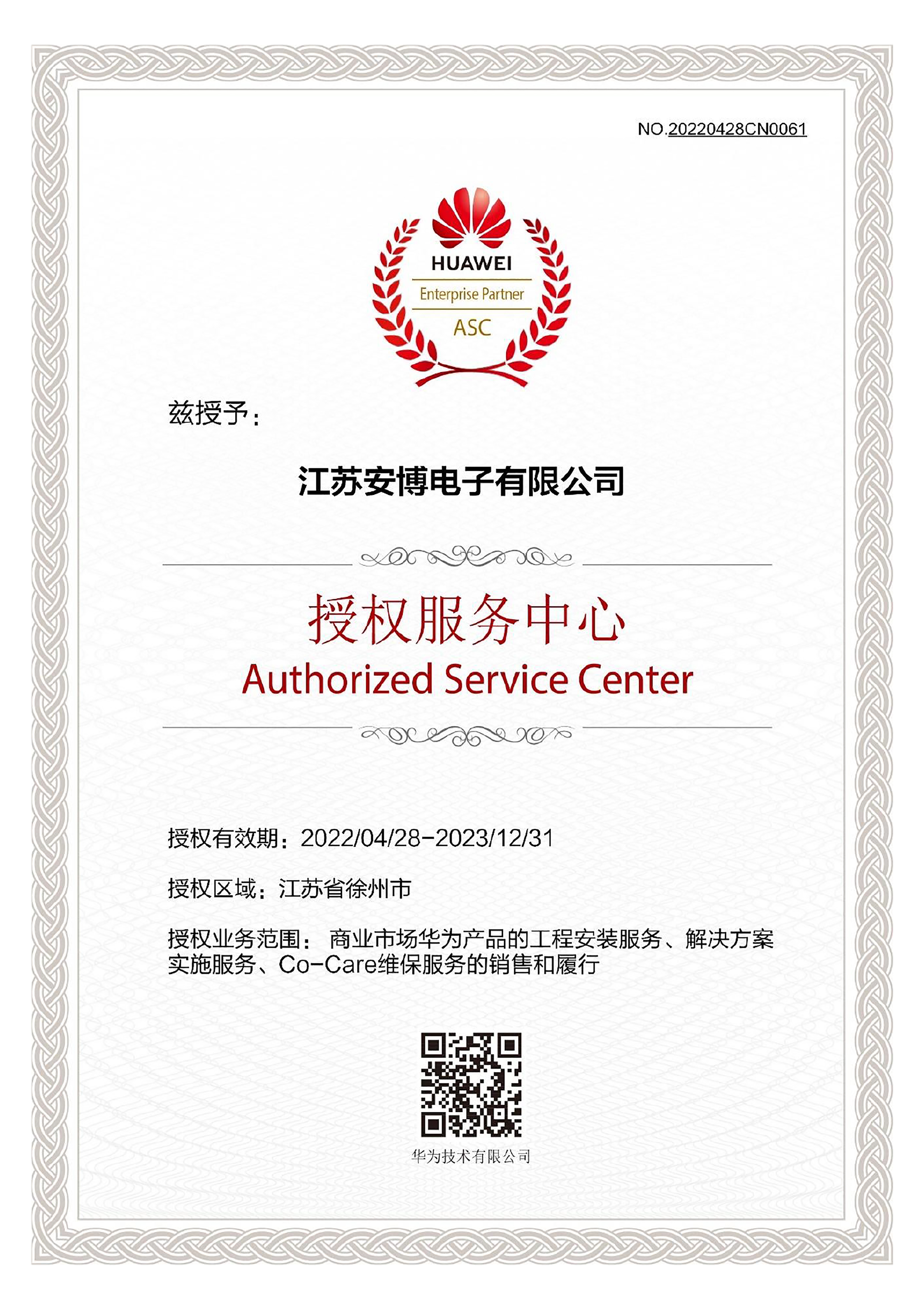 華為授權(quán)服務(wù)中心證書(shū)