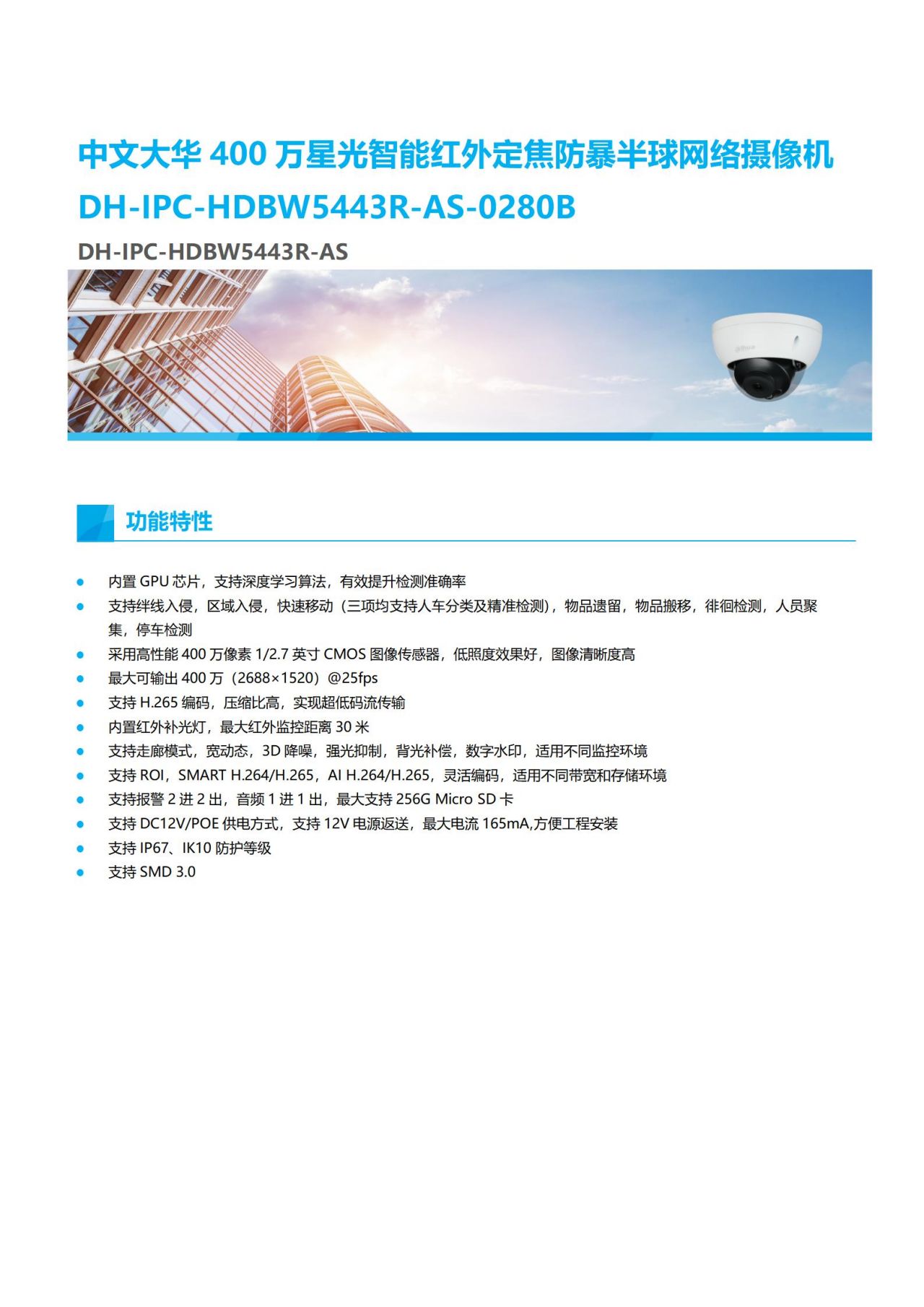 產(chǎn)品名稱:網(wǎng)絡(luò)攝像機(jī)DH-IPC-HDBW5443R-AS普通式更新時(shí)間:2022-4-14 15:42:51 |